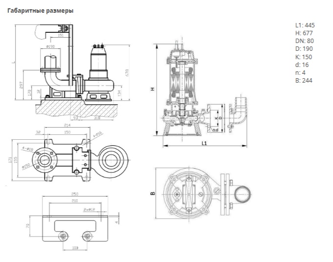 - Универсальность монтажа: возможность стационарной установки при помощи устройства погружного монтажа или на донной опоре с непосредственным подсоединением трубопровода к фланцевому напорному патрубку, а также возможность мобильной установки с подсоединением шланга к специальному переходнику