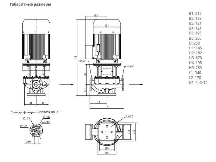 Ин-лайн исполнение с низким уровнем шума и вибрации с промежуточным корпусом и неподвижно присоединенным унифицированным (стандартным) электродвигателем. С независящим от направления вращения скользящим торцевым уплотнением в кожухе с принудительным охлаждением и снижающим кавитацию рабочим колесом. Фланцы по EN1092-2 со штуцерами R 1/4” для возможности измерения давления. Все чугунные компоненты снаружи и внутри имеют защитное катафорезное покрытие. Электродвигатель класса IE2.