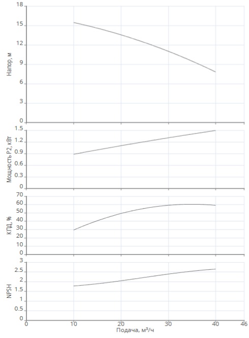 Ин-лайн исполнение с низким уровнем шума и вибрации с промежуточным корпусом и неподвижно присоединенным унифицированным (стандартным) электродвигателем. С независящим от направления вращения скользящим торцевым уплотнением в кожухе с принудительным охлаждением и снижающим кавитацию рабочим колесом. Фланцы по EN1092-2 со штуцерами R 1/4” для возможности измерения давления. Все чугунные компоненты снаружи и внутри имеют защитное катафорезное покрытие. Электродвигатель класса IE2.