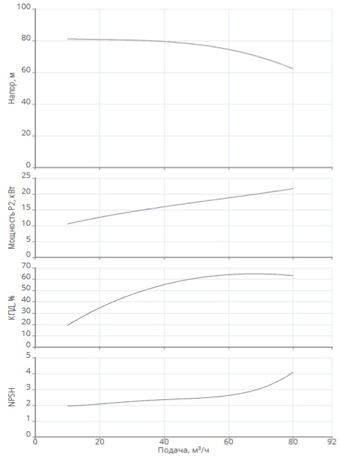 Ин-лайн исполнение с низким уровнем шума и вибрации с промежуточным корпусом и неподвижно присоединенным унифицированным (стандартным) электродвигателем. С независящим от направления вращения скользящим торцевым уплотнением в кожухе с принудительным охлаждением и снижающим кавитацию рабочим колесом. Фланцы по EN1092-2 со штуцерами R 1/4” для возможности измерения давления. Все чугунные компоненты снаружи и внутри имеют защитное катафорезное покрытие. Электродвигатель класса IE2.