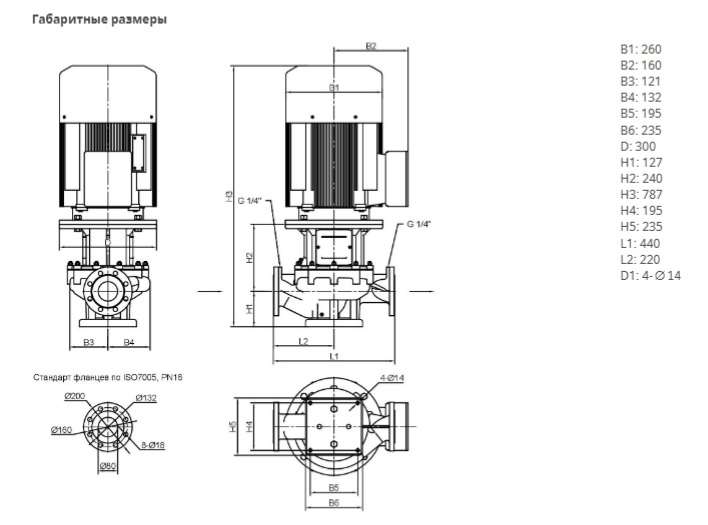 Ин-лайн исполнение с низким уровнем шума и вибрации с промежуточным корпусом и неподвижно присоединенным унифицированным (стандартным) электродвигателем. С независящим от направления вращения скользящим торцевым уплотнением в кожухе с принудительным охлаждением и снижающим кавитацию рабочим колесом. Фланцы по EN1092-2 со штуцерами R 1/4” для возможности измерения давления. Все чугунные компоненты снаружи и внутри имеют защитное катафорезное покрытие. Электродвигатель класса IE2.