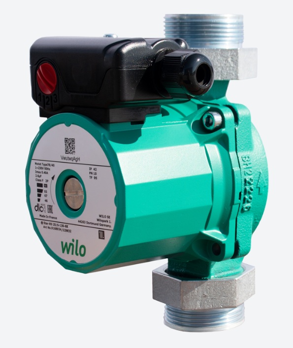 Циркуляционный насос с мокрым ротором и резьбовым соединением. Предварительно задаваемые ступени частоты вращения для регулировки мощности. С устойчивым к токам блокировки мотором. Корпус насоса из серого чугуна, рабочее колесо из упрочненного стекловолокном синтетического материала, вал из нержавеющей стали с угольными подшипниками скольжения с металлической пропиткой. Серийное применение в системах холодной воды с температурой от -10°C до +110°C.